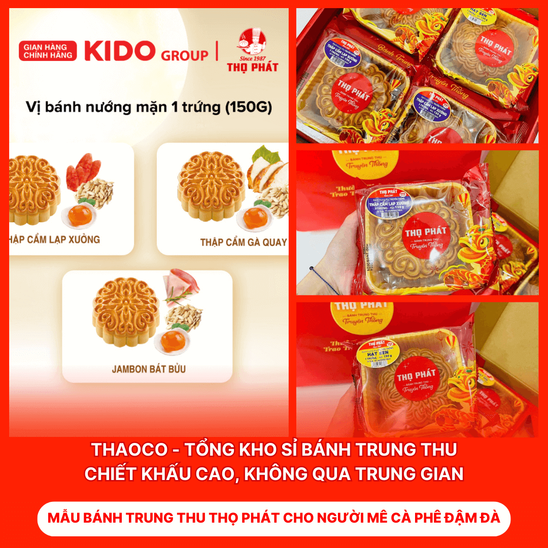 – Giá bánh trung thu Thọ Phát: Giá bánh trung thu kido thay đổi tùy theo thời gian và chương trình khuyến mại. Quý khách hàng có thể mua bánh trung thu kido với giá từ 40.000 đến 110.000 đồng/cái. Các loại bánh trung thu kido bao gồm: bánh trung thu kido giá, bánh trung thu kido’s giá, bánh trung thu kido hộp 4 chiếc, bánh trung thu kido hộp 2 cái, bánh trung thu kido giảm giá.